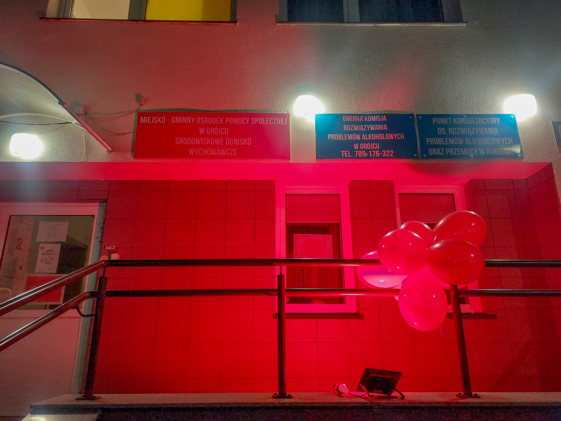To właśnie dziś o 17:00 budynek Miejsko-Gminnego Ośrodka Pomocy Społecznej w Grójcu rozświetlił się na czerwono🚨🚨🚨🚨