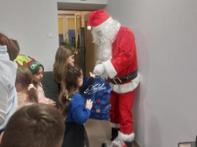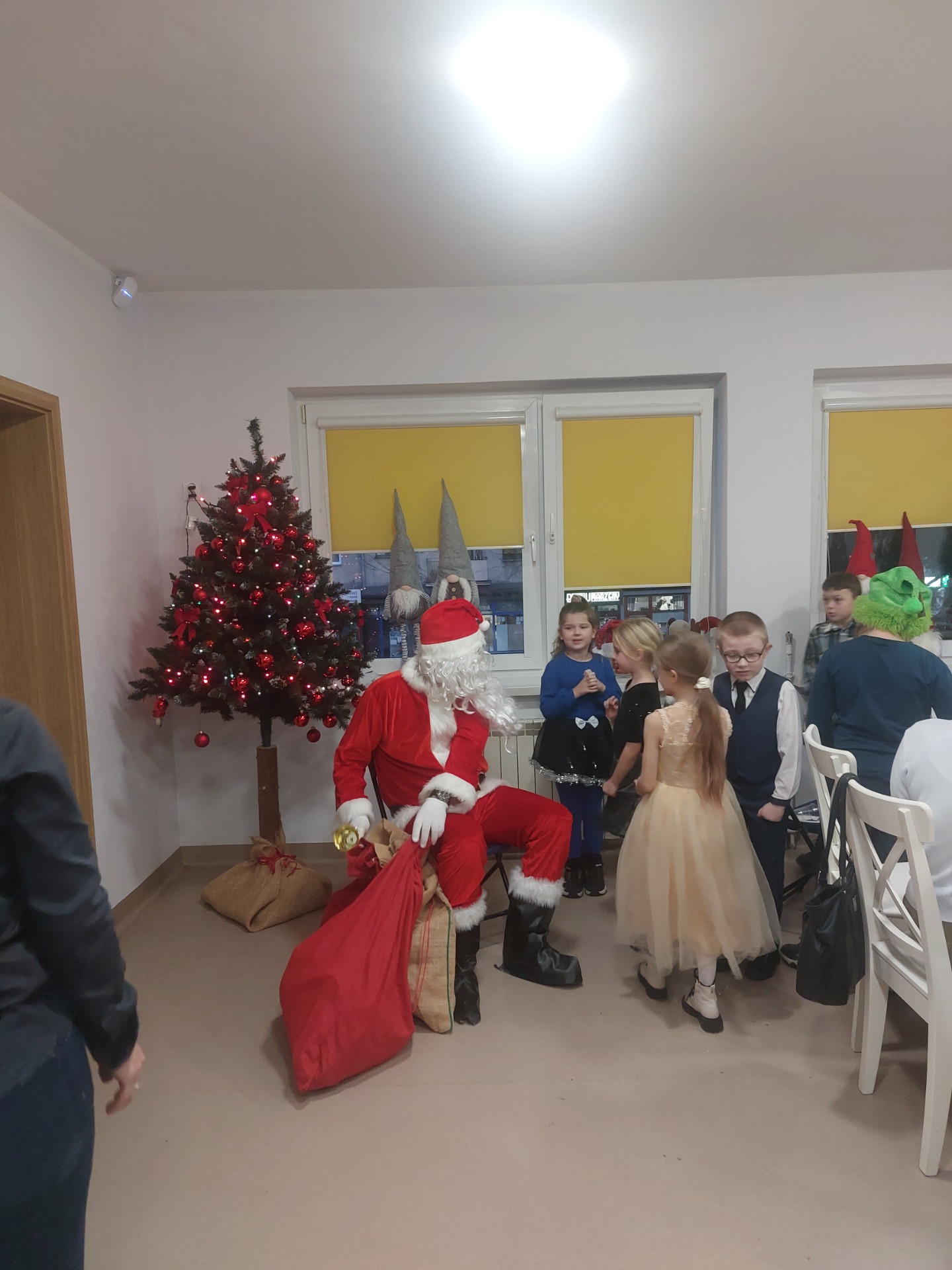 Niespodzianką dla dzieci było pojawienie się św. Mikołaja, który wszystkim dzieciom rozdał wspaniałe prezenty i zapozował do wspólnego zdjęcia.