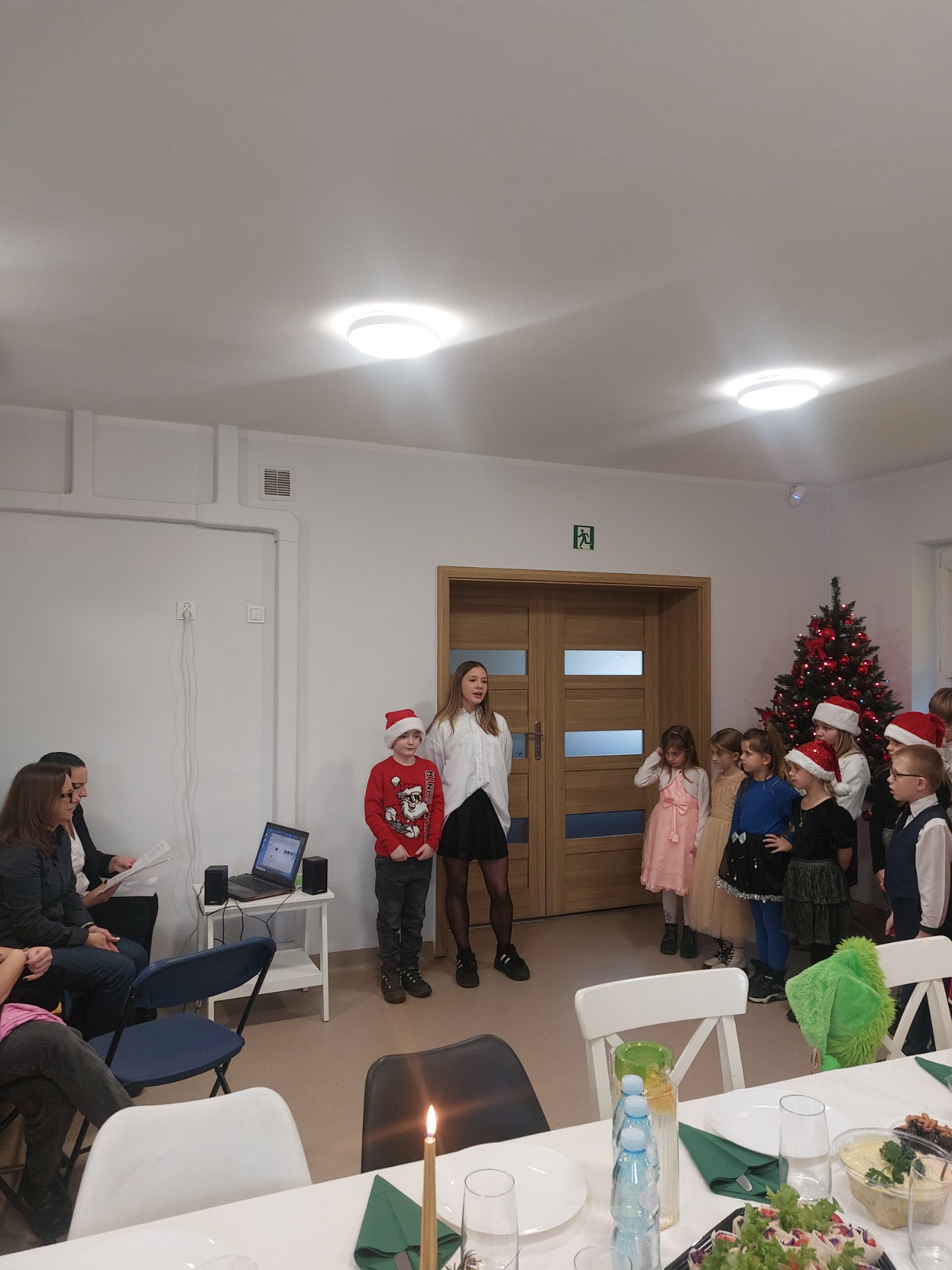 Dzieci rozpoczęły wieczór od recytacji wierszy, a wspólne śpiewanie kolęd wprowadziło nas wszystkich w prawdziwie świąteczny nastrój. 🎶