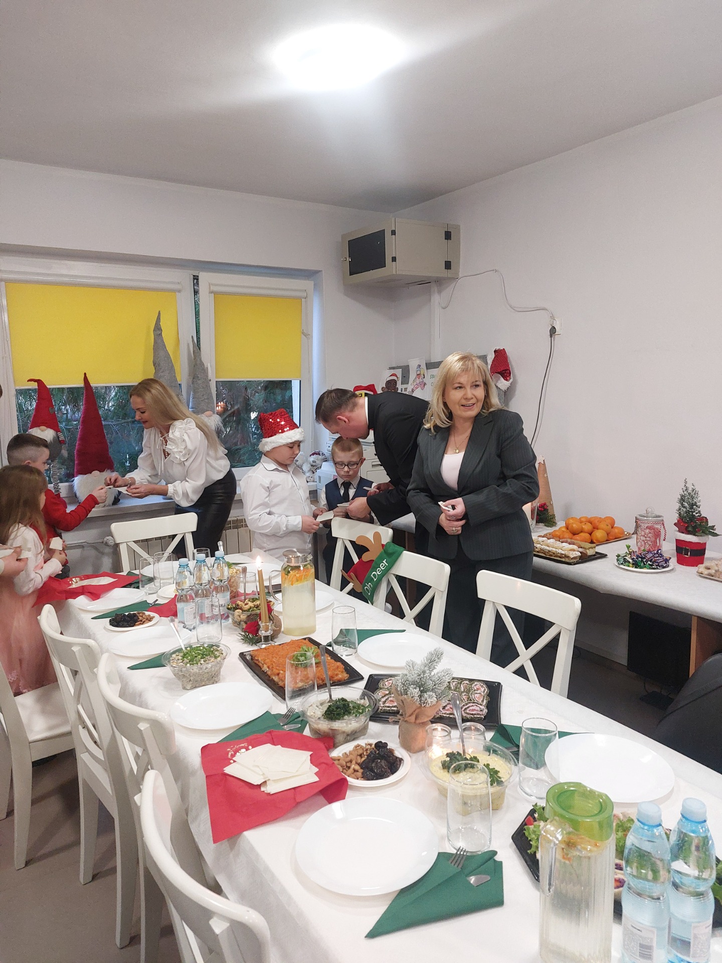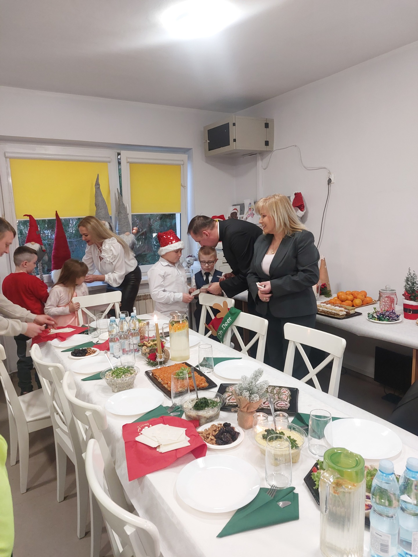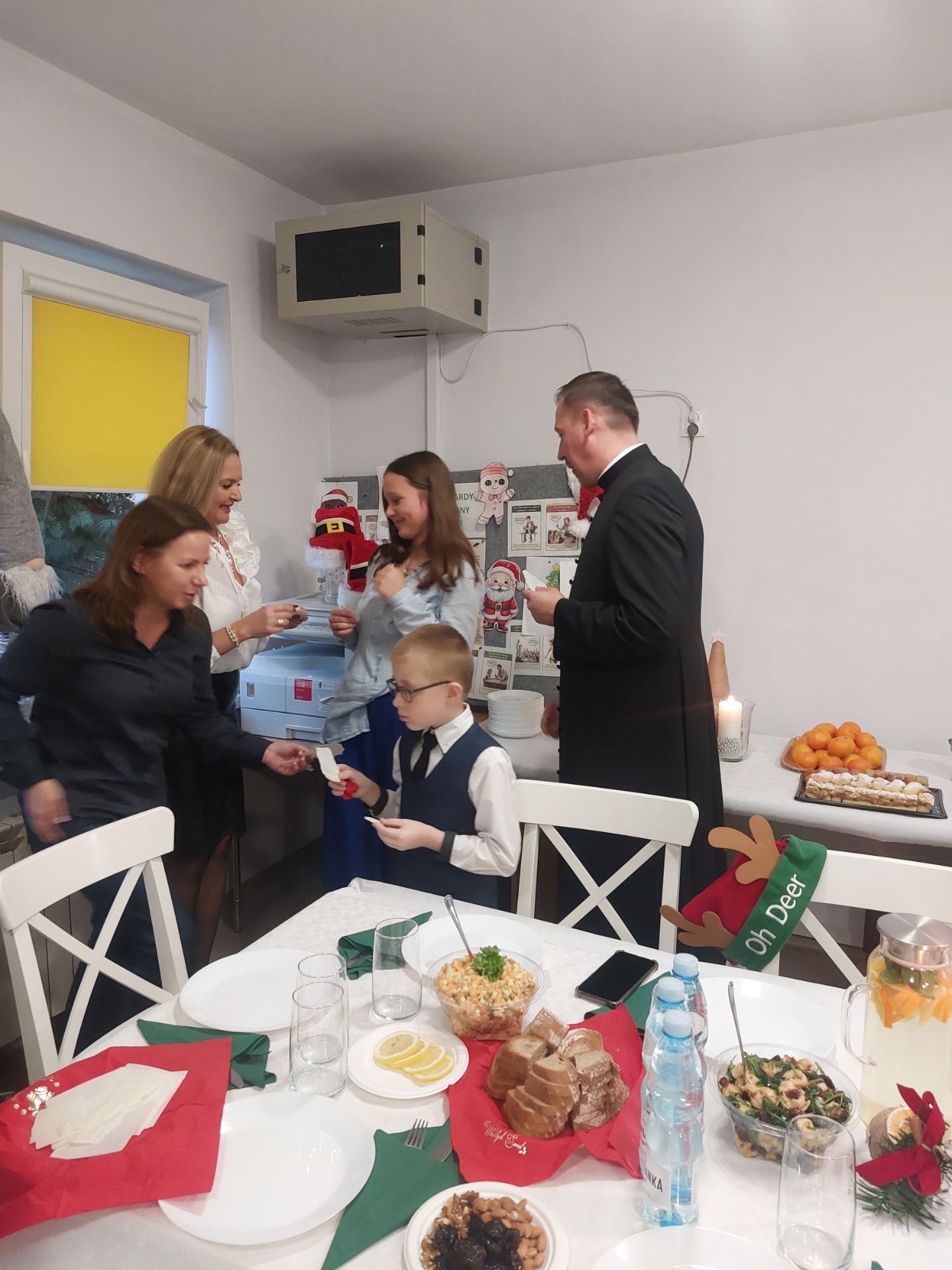 Następnie wszyscy uczestnicy podzielili się opłatkiem, składając sobie świąteczne życzenia, po czym zasiedli do stołu, by wspólnie celebrować tradycyjne potrawy wigilijne. ⭐